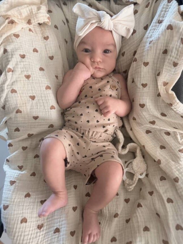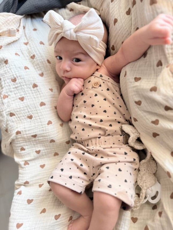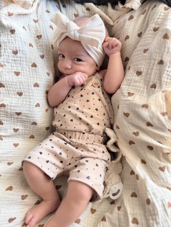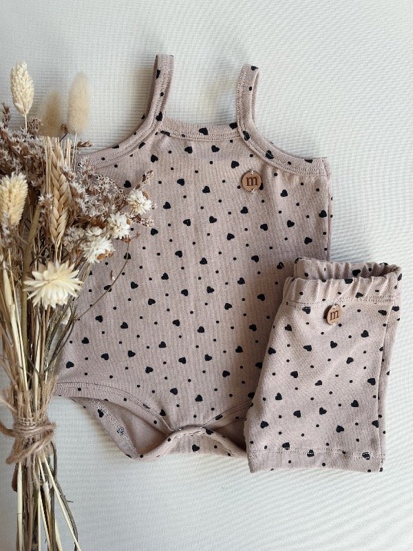 Conjunto de body con corazones y biker, confeccionados en algodón con lycra de doble rebote, suave y elastizado.